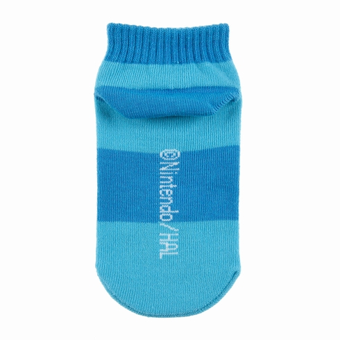 「星のカービィ」のスニーカー丈ソックス。カービィの口からロゴが出ているおもしろかわいいデザインで、スニーカー丈なので普段使いしやすい1足。便利なお名前スペースつきです。