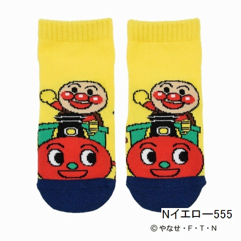 子供靴下(キッズソックス) それいけ!アンパンマン キャラクター すべり止め付き 乗り物柄 フロントジャスト丈 (ベビーサイズ 9-14cm) 1足組 1872-1J0